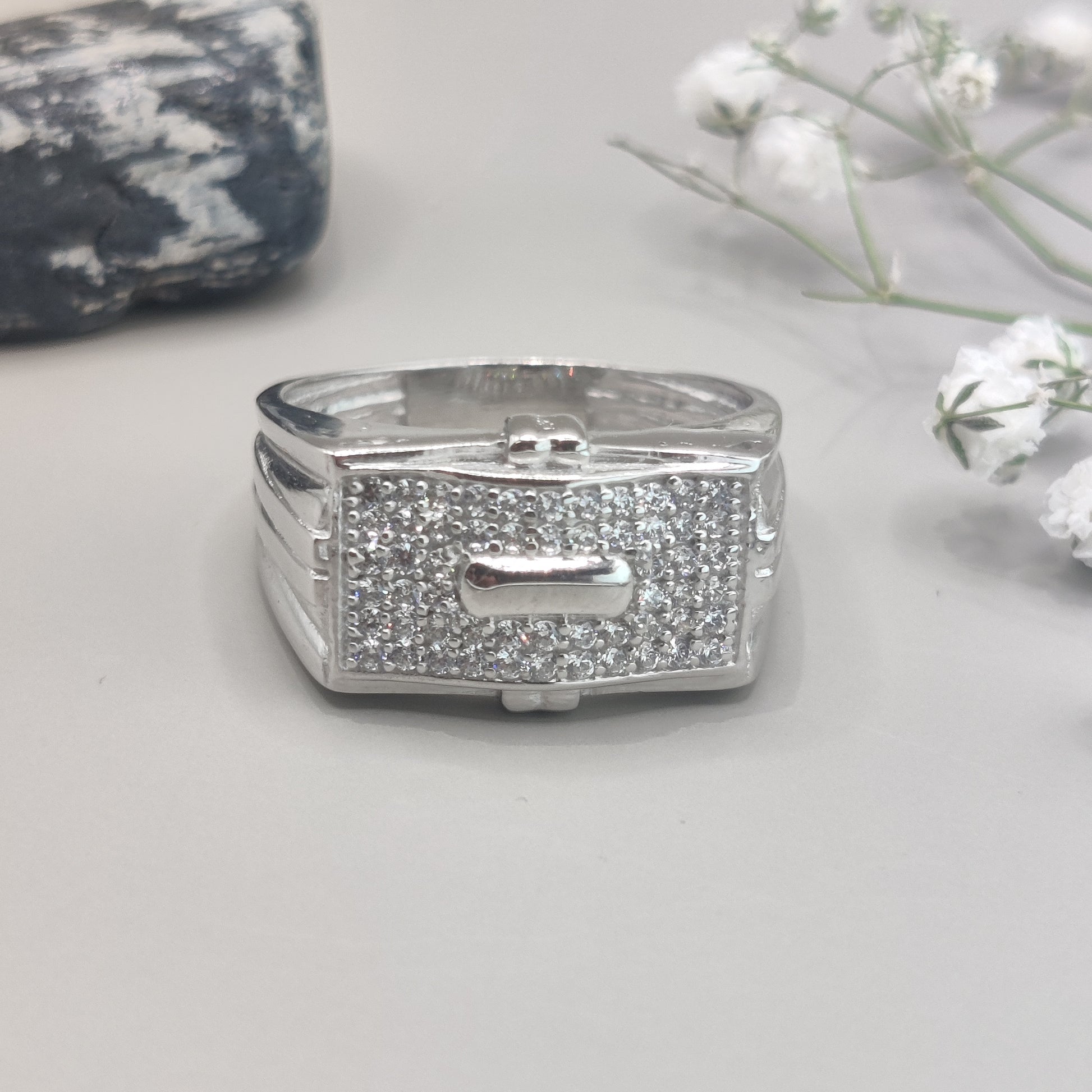 This Centered Shining CZ Pavé Silver Ring adds a bold yet refined touch to any attire. Featuring a radiant central CZ stone surrounded by a dazzling pavé setting, it’s the perfect choice for the modern man who values elegance and brilliance. Elevate your look with a statement piece crafted for timeless appeal.
