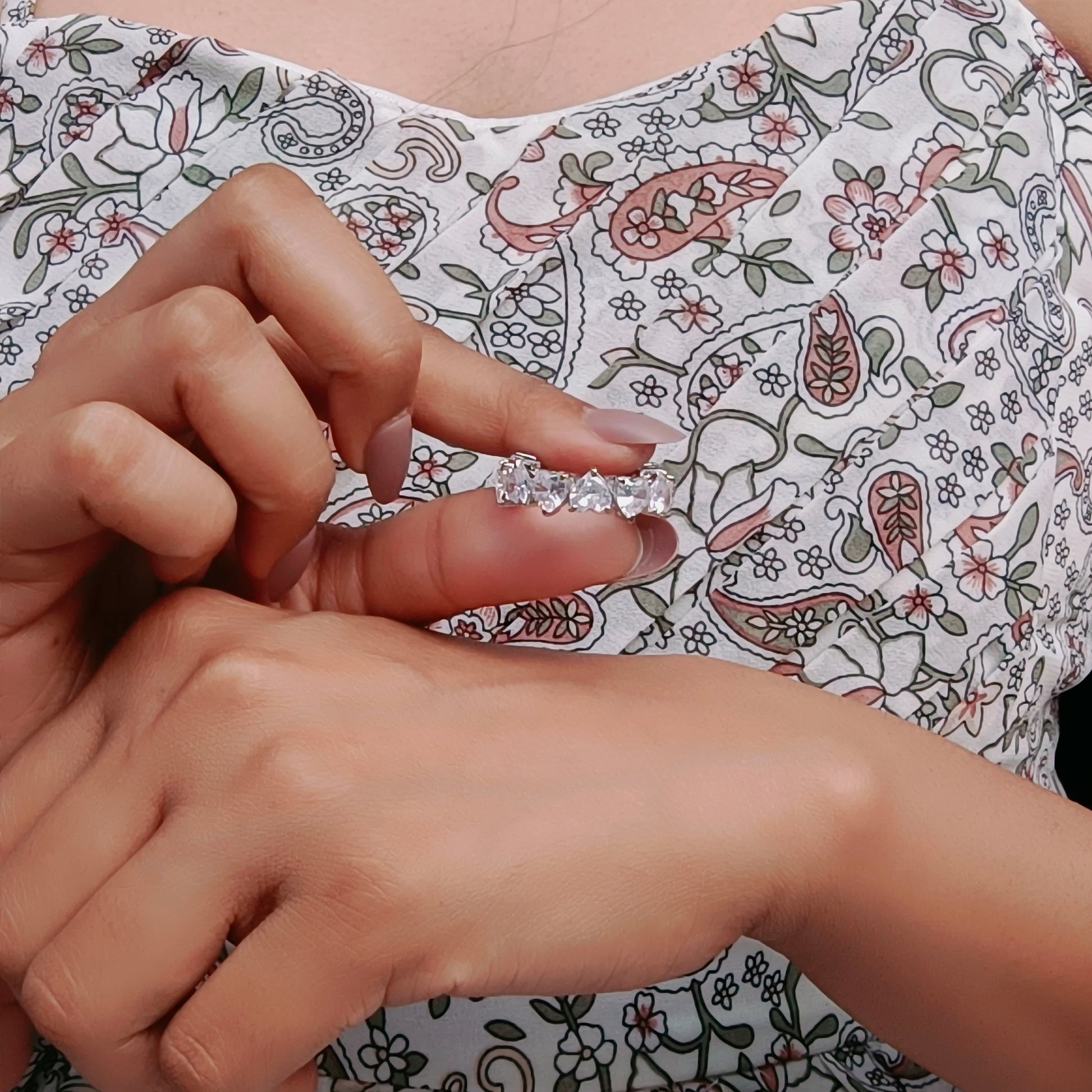 Wrapped in radiant heart-shaped stones, this ring is made to steal hearts—especially yours. It’s the sparkle that whispers “I love being adored” every time you move. A romantic reminder that your love should always come full circle.
