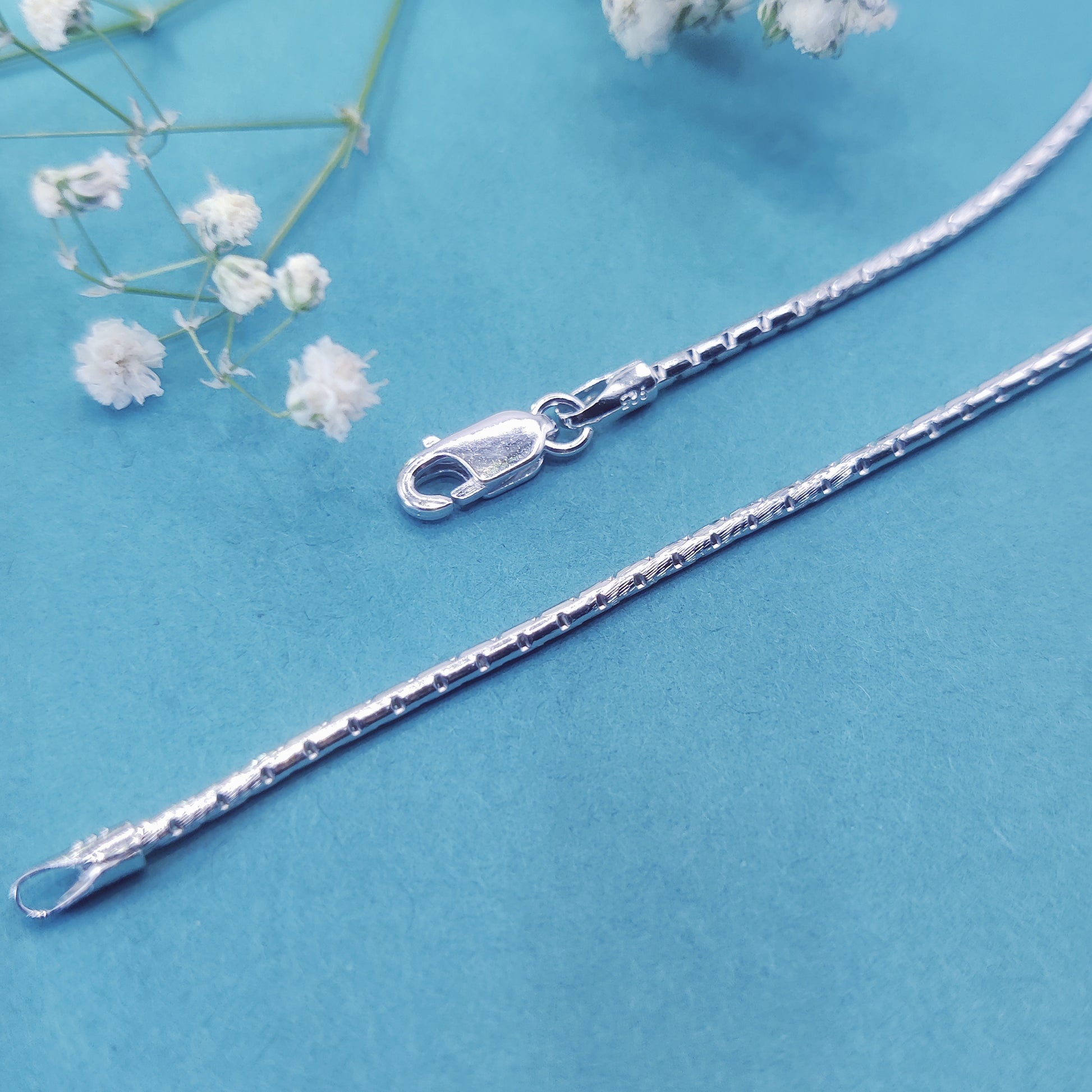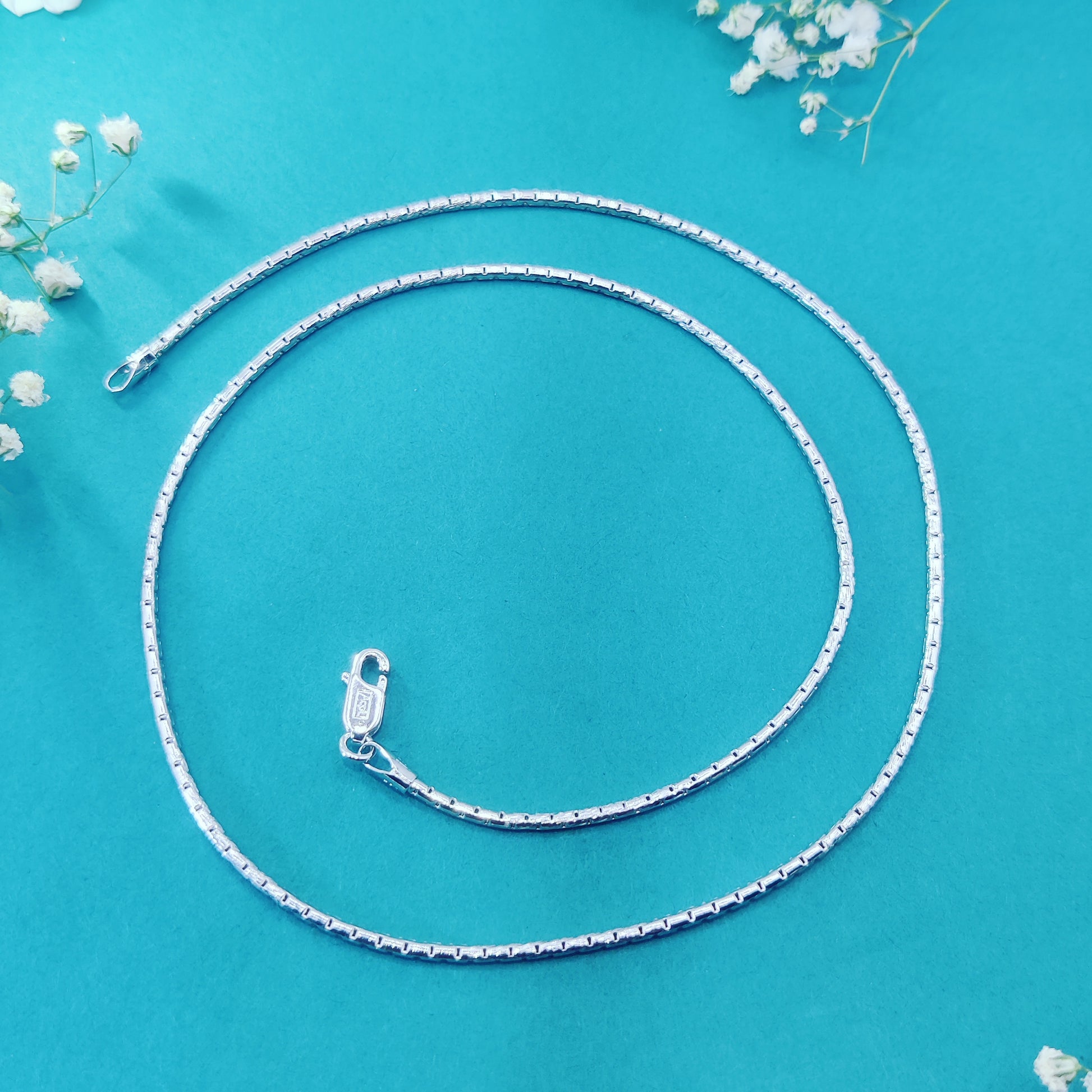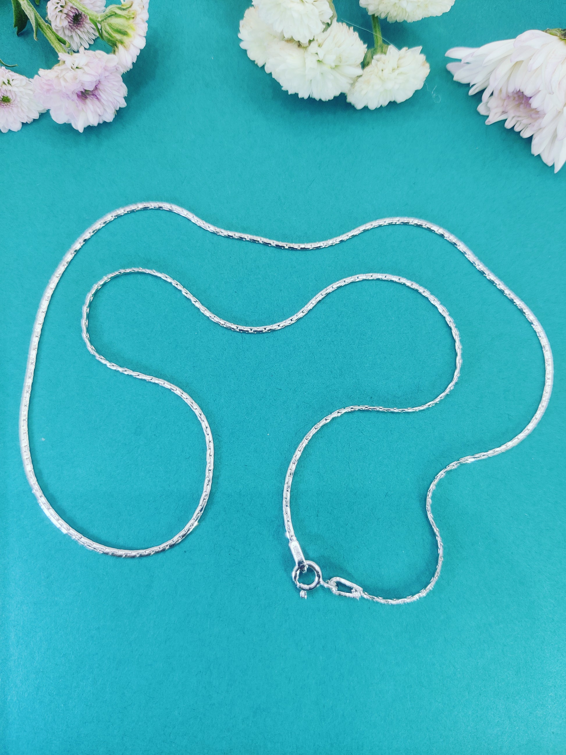 The Elegant Glimmer Silver Chain speaks the language of grace and simplicity. Designed with precision, its textured finish catches the light effortlessly, making every outfit shine. This chain embodies sophistication while maintaining a subtle charm, perfect for the modern woman who values both style and meaning.