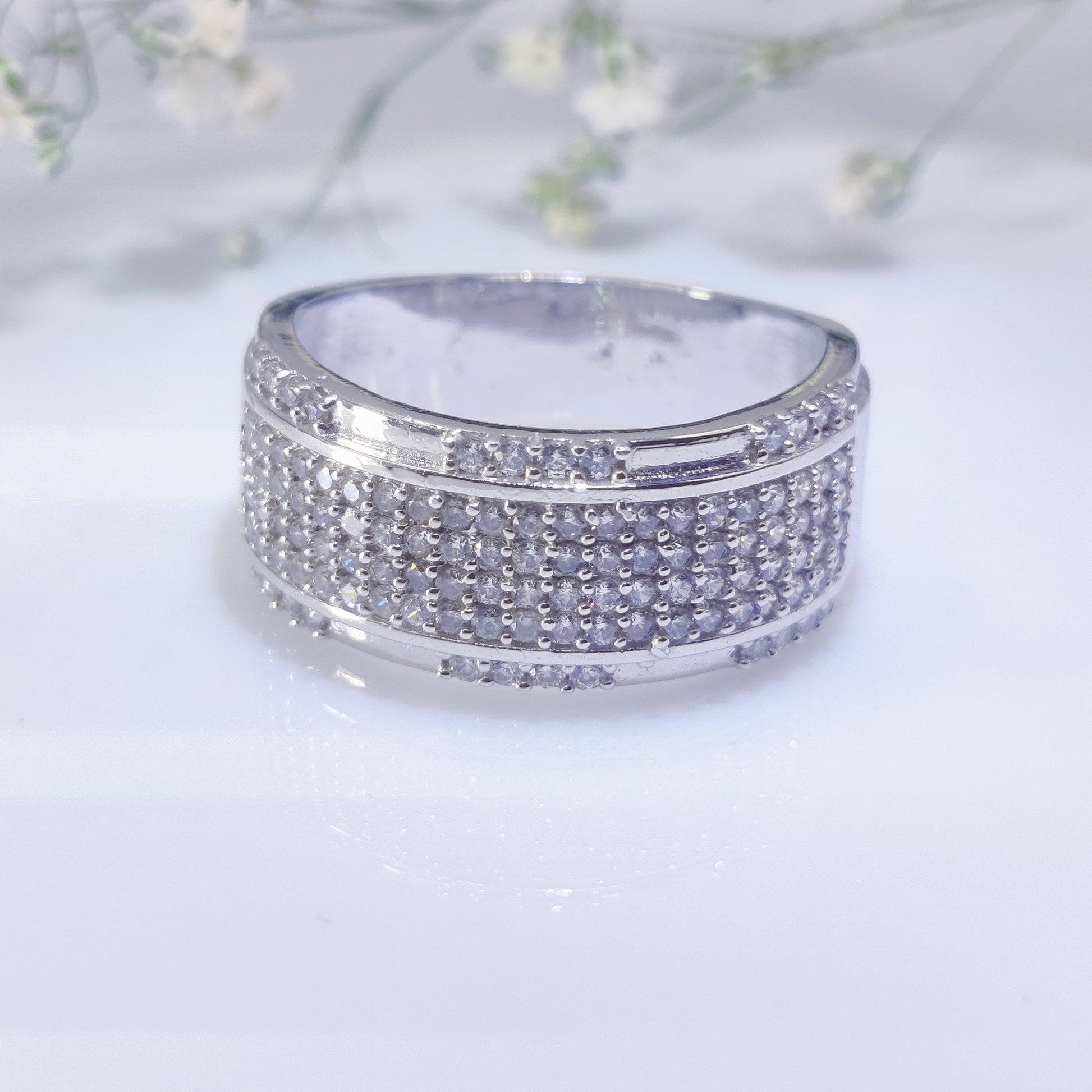The Forever Spark Couple Rings radiate elegance and timeless devotion. The men’s ring, bold and encrusted with meticulously placed stones, symbolizes unwavering strength and commitment. The women’s band, with a delicate yet dazzling full-paved design, represents the grace and beauty of a love that lasts forever.