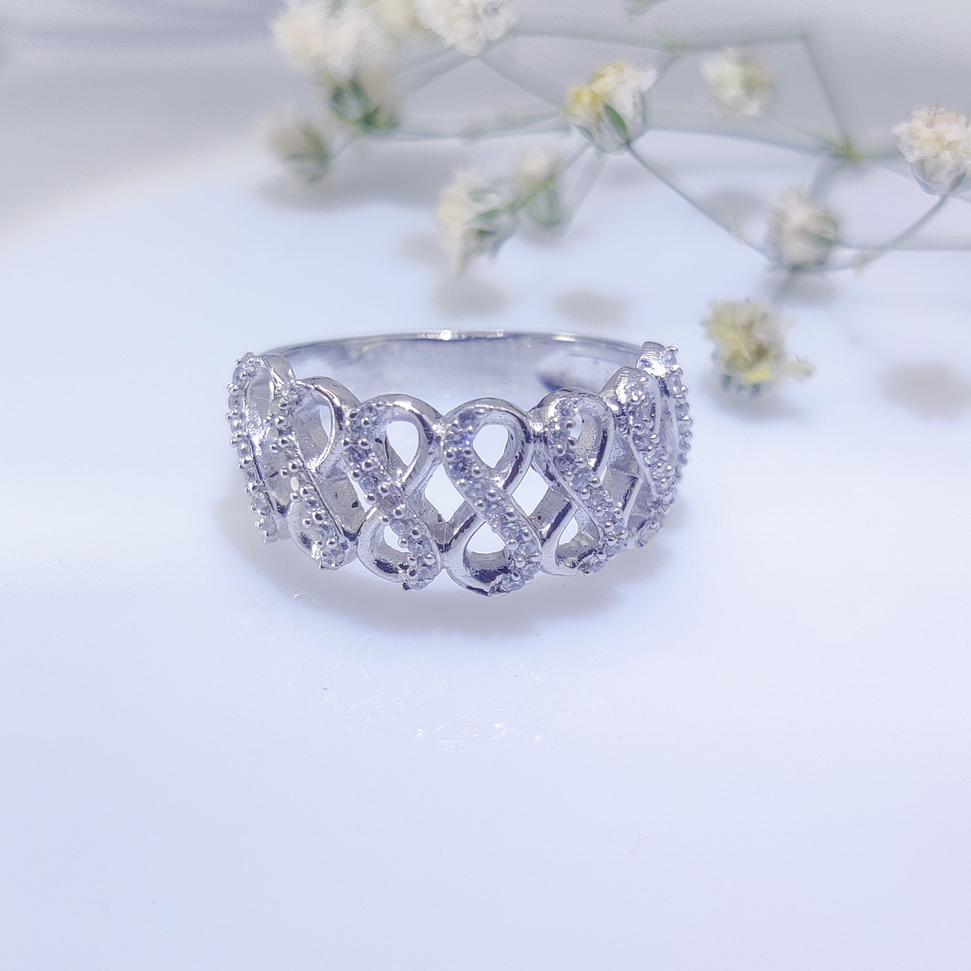The Infinite Bond Couple Rings embody the beauty of everlasting love. His ring features a bold geometric pavé-set design, radiating strength and elegance, while hers is adorned with delicate infinity loops, symbolizing eternal devotion. Crafted from 925 Sterling Silver, these rings are a testament to love that stands the test of time.