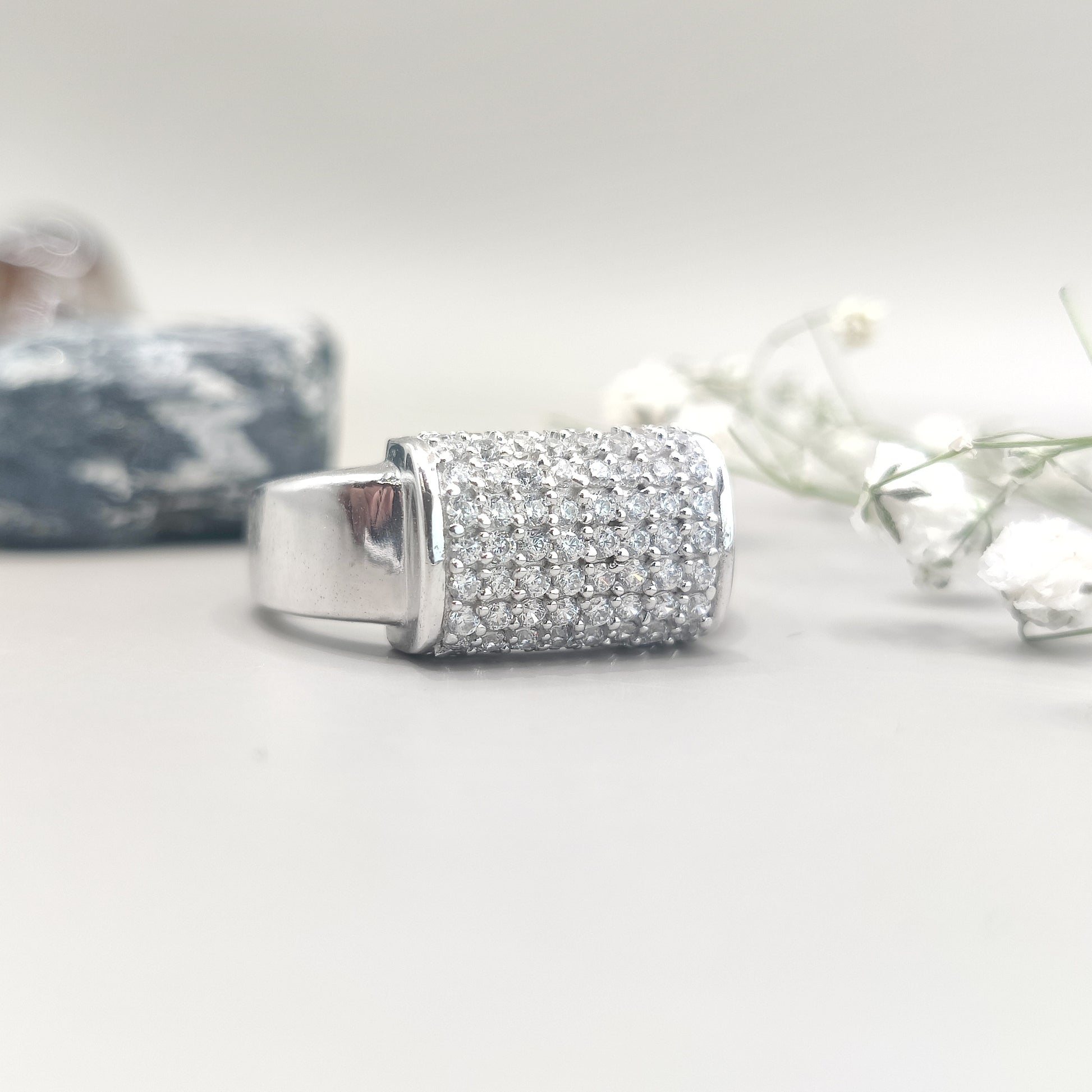 Luxurious Pavé Set Diamond Sparkle Silver Ring