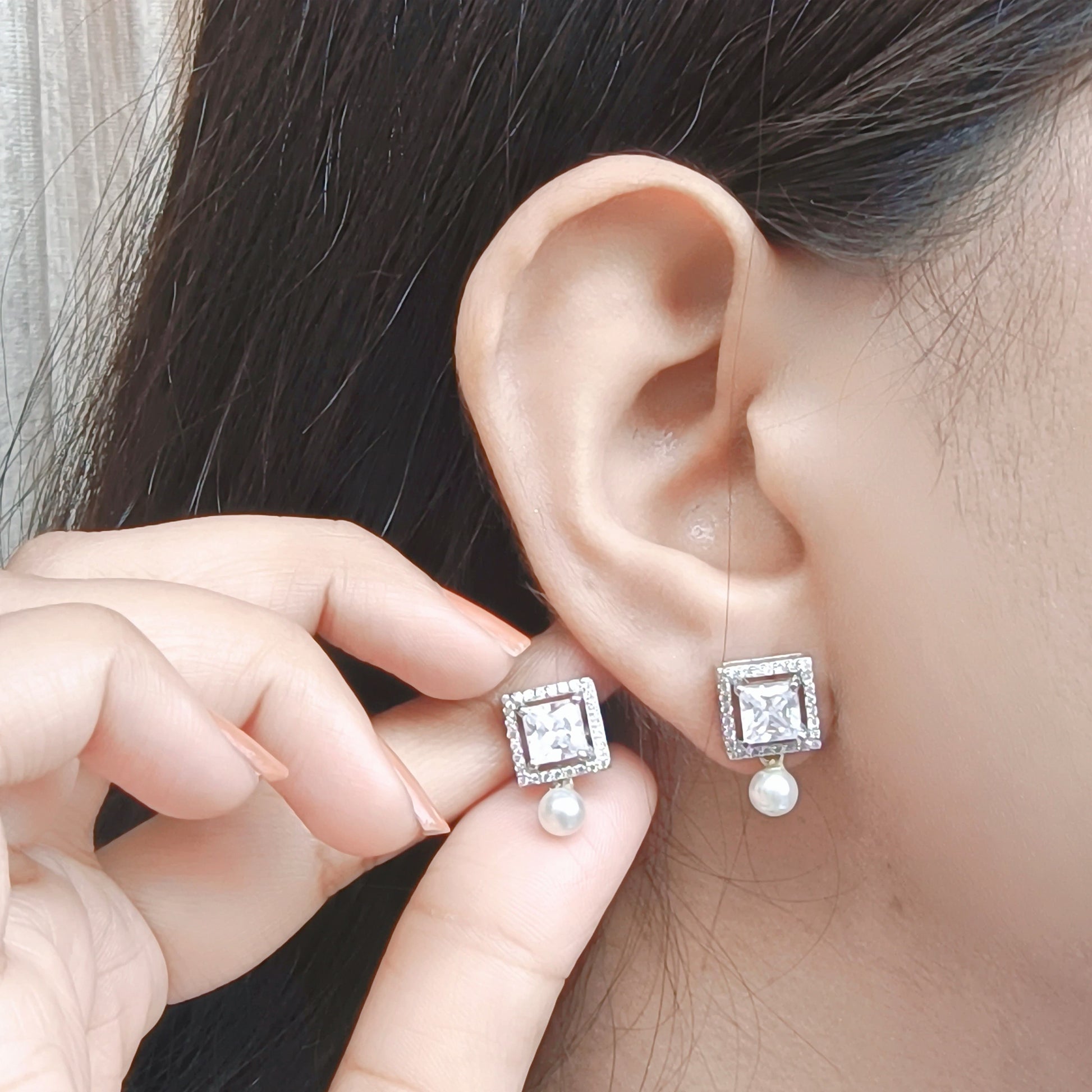 The Pearl Play Affair Set brings a daring twist to classic elegance. With its bold square-cut brilliance topped off by that flirty little pearl drop, this set says you're not just pretty—you’re powerful.
