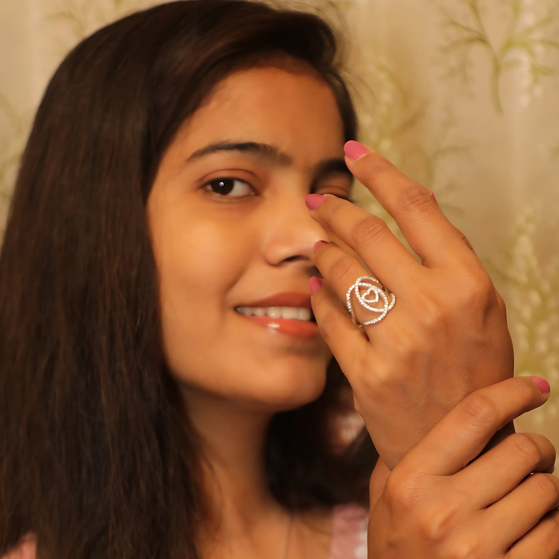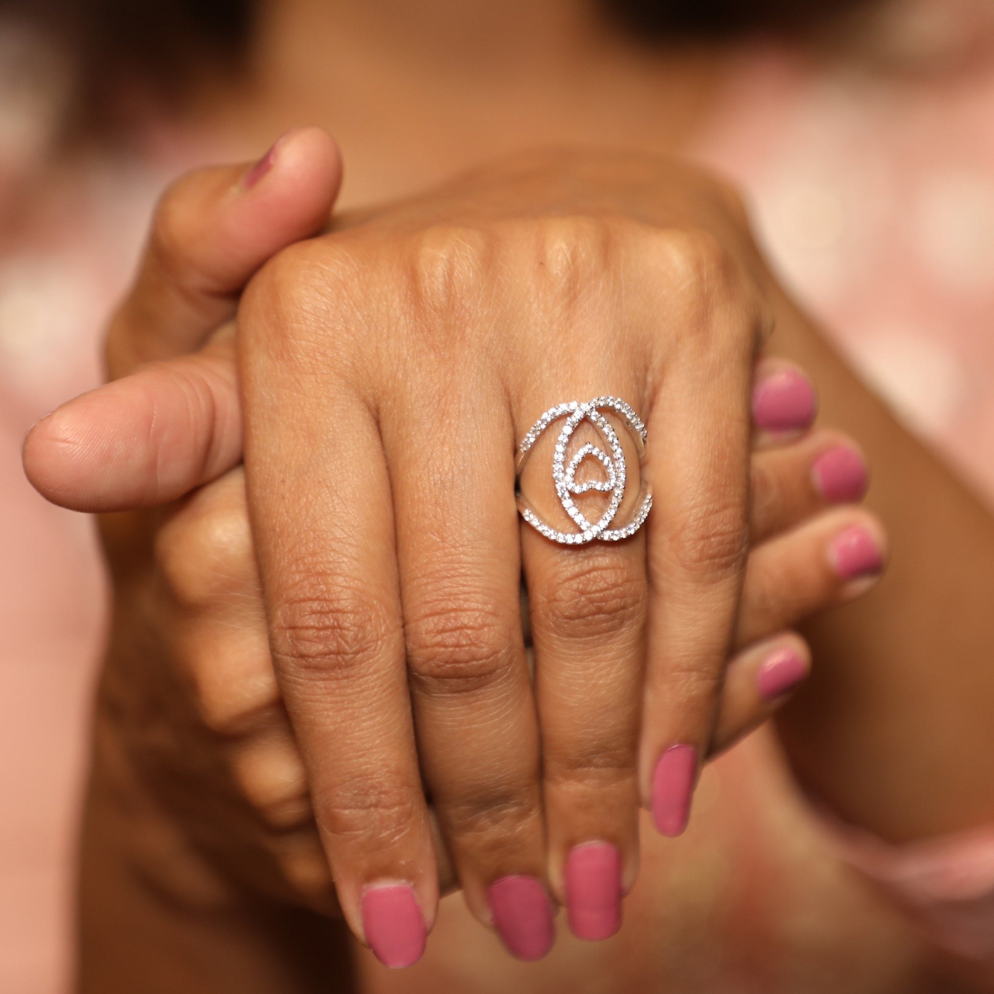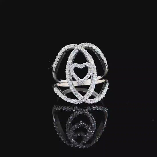 Interlocking Hearts Rose Diamond Silver Ring – A Symbol of Eternal Love