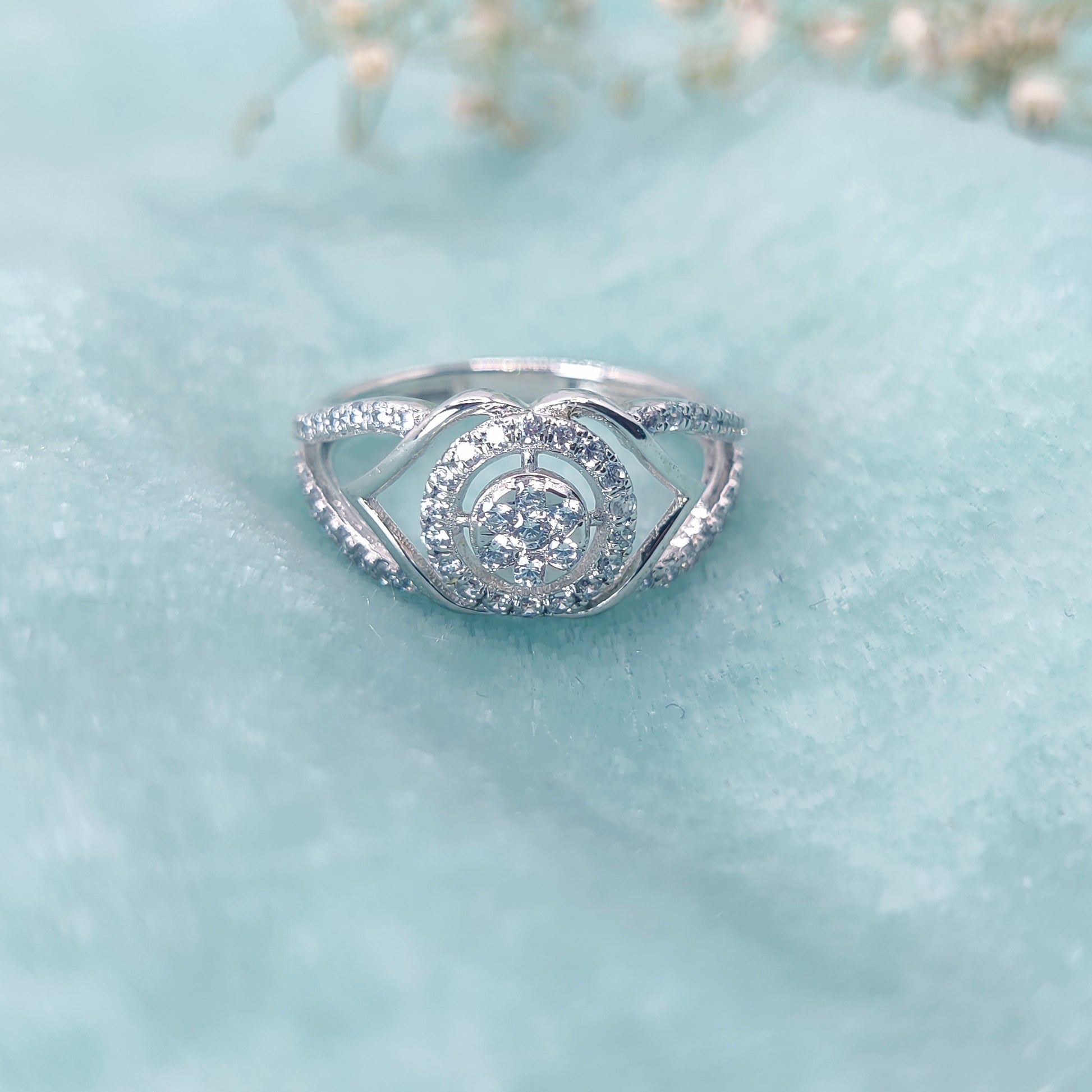 The Shimmer Within Grace ring is where subtle curves meet powerful sparkle. Crafted to draw eyes inward, its graceful outline surrounds a cluster of glistening stones that shimmer with every little movement—like your own quiet confidence glowing from within.