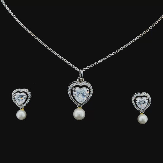 - Material: Rhodium-Plated + CZ Heart Stone + Faux Pearl