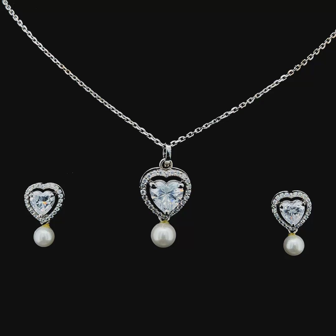 The Heartfelt Radiance Set is all about unapologetic love and sparkle. With a dazzling heart-shaped stone framed by fine zircons and crowned with a soft pearl drop, this set isn't just romantic—it's a total flirt. Whether it's a date night, a self-love moment, or a gift that speaks volumes, this beauty makes you glow like you're in love with life itself. Add the matching earrings, and it’s a complete love story written in silver.
