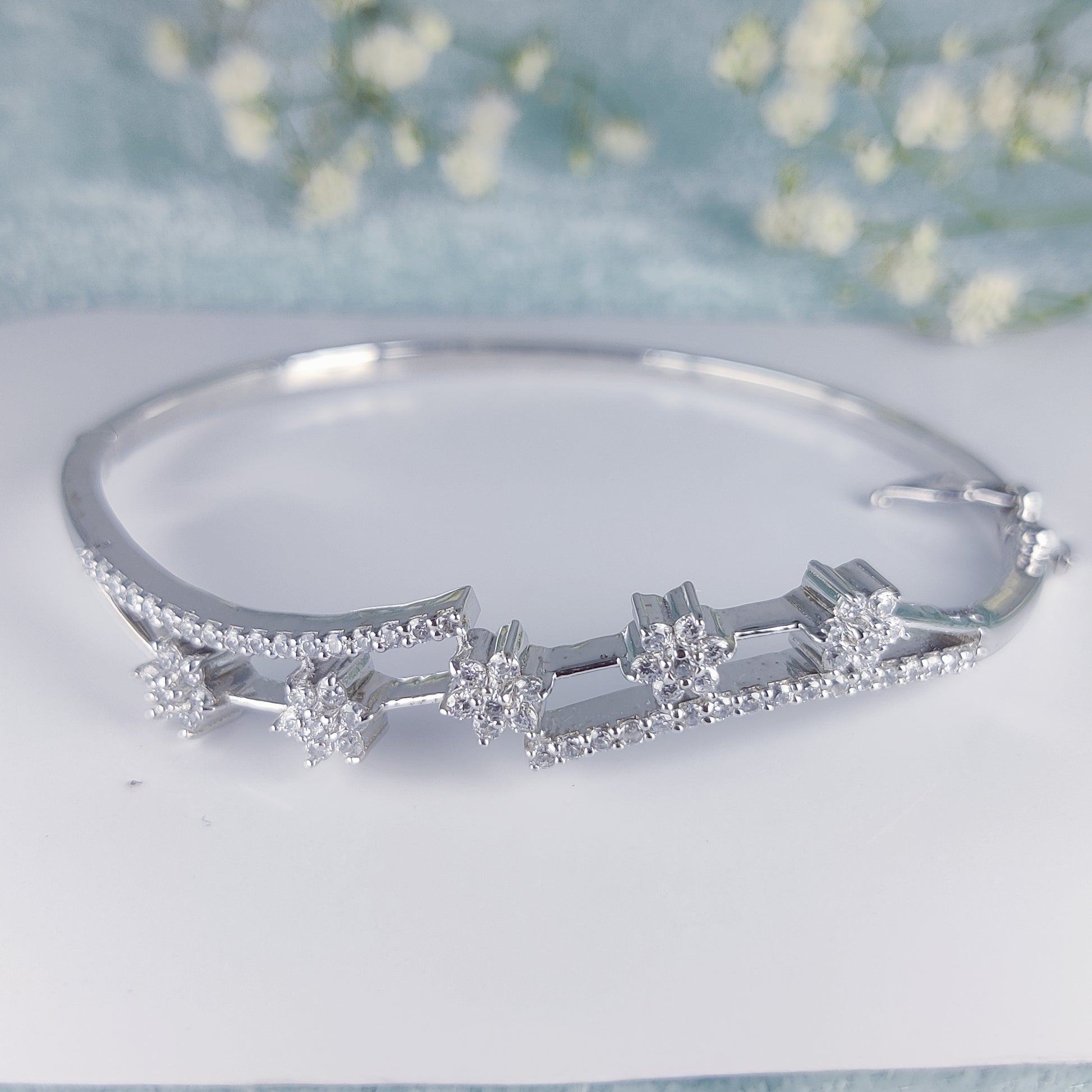 The Twilight Bloom Kada captures that rare charm of elegance kissed by nature’s rhythm. With delicate star-like floral motifs dancing across your wrist, this bracelet adds a soft shimmer that speaks of quiet confidence.