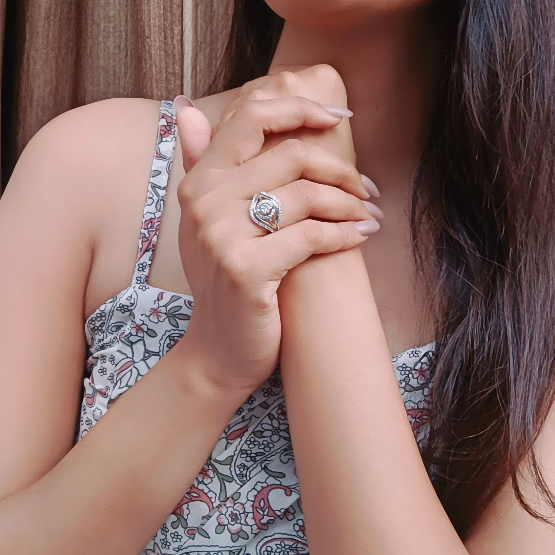 The Twisted Orbit Halo Ring is an elegant fusion of symmetry and brilliance. With a uniquely twisted diamond-studded band encircling a radiant center, this piece reflects movement, grace, and magnetic charm. It’s more than just a ring—it’s your light, your story, and your silent statement.