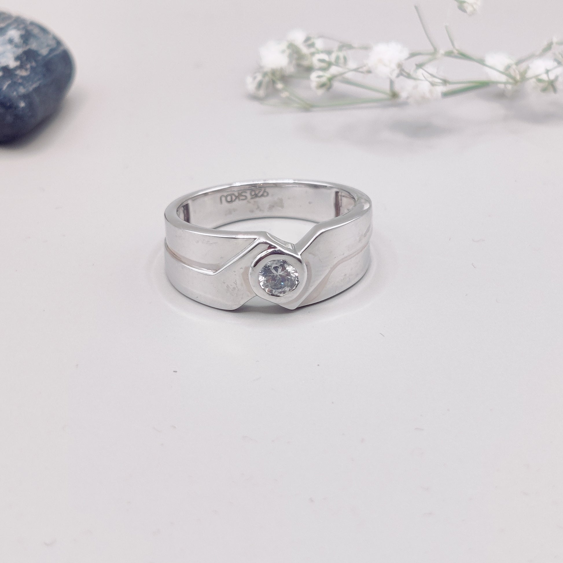 Highlight: V-Crest Design with a Solo Gemstone that commands attention
