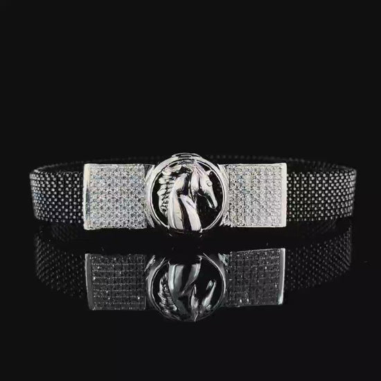 Vintage Horse motif Adjustable 925 Silver Bracelet for Men